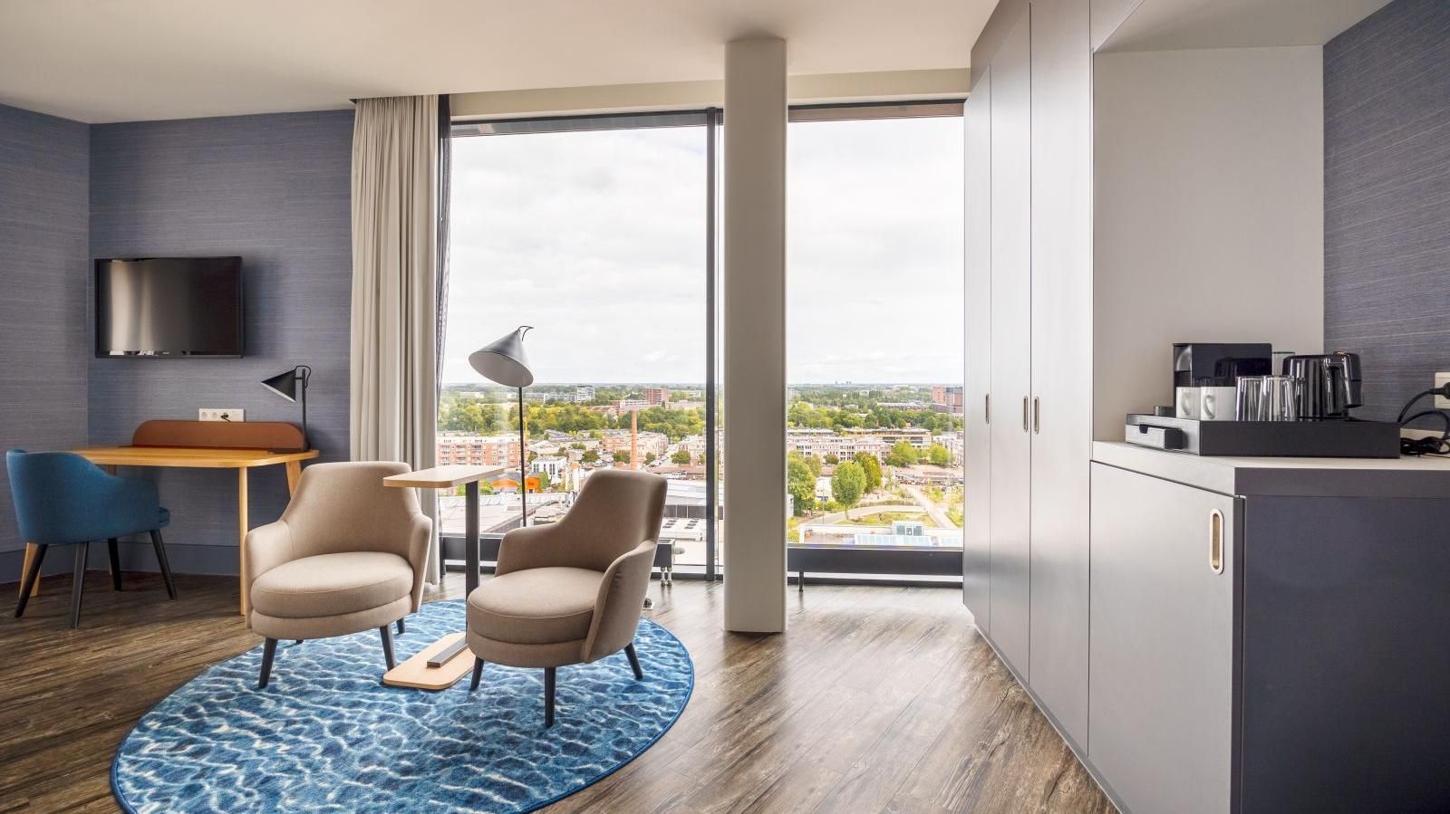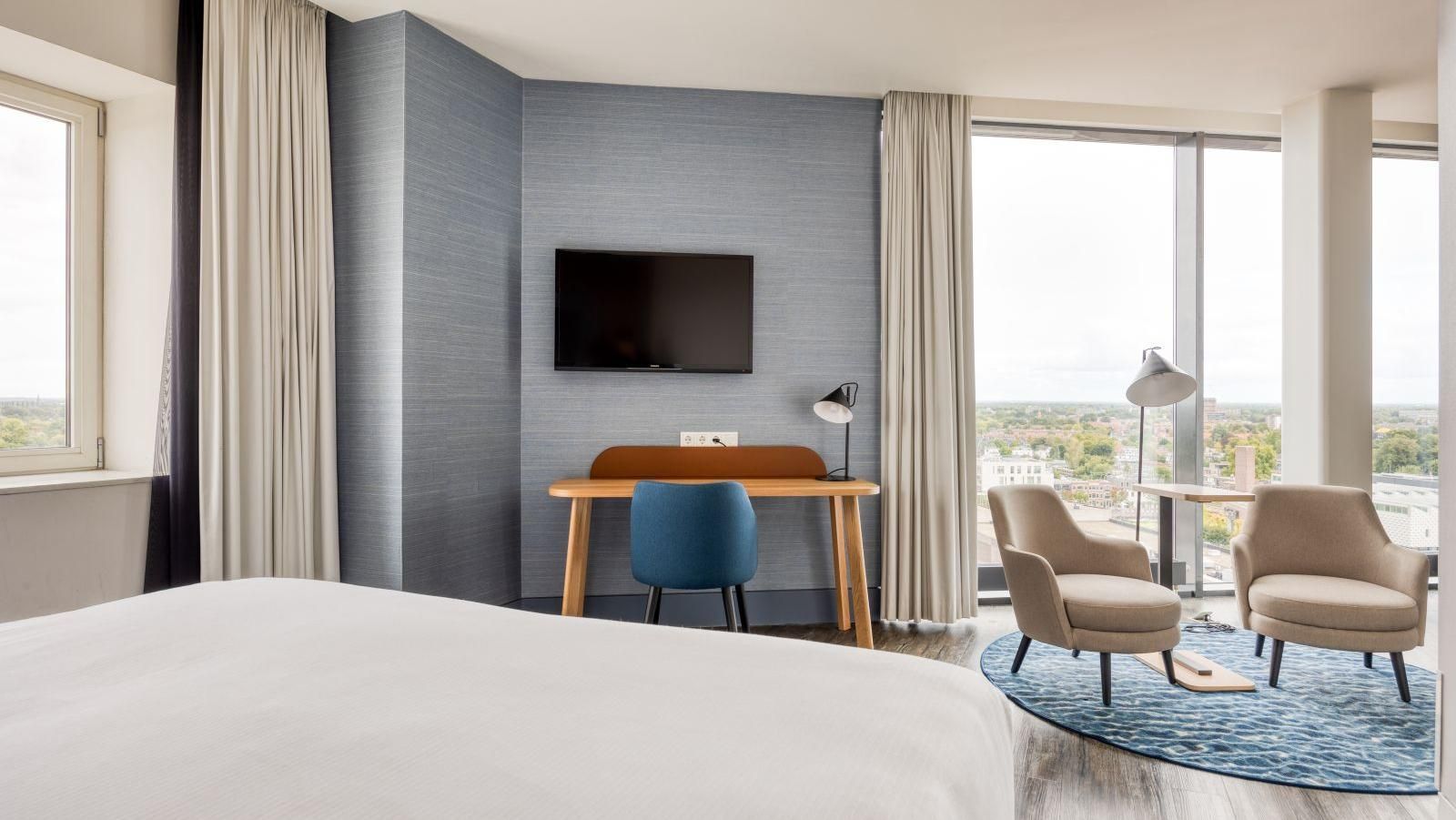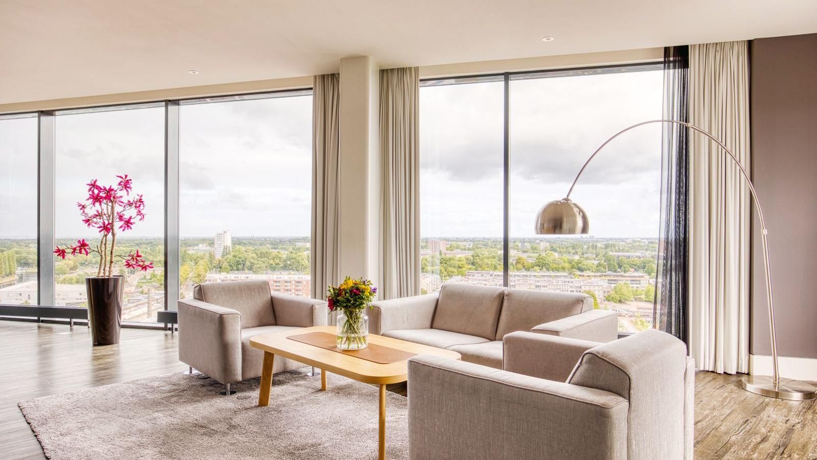 De Junior Suites, met een fantastisch uitzicht over de stad vanuit uw bed, bieden u een ruime zithoek en een heerlijke 2-persoons jacuzzi.